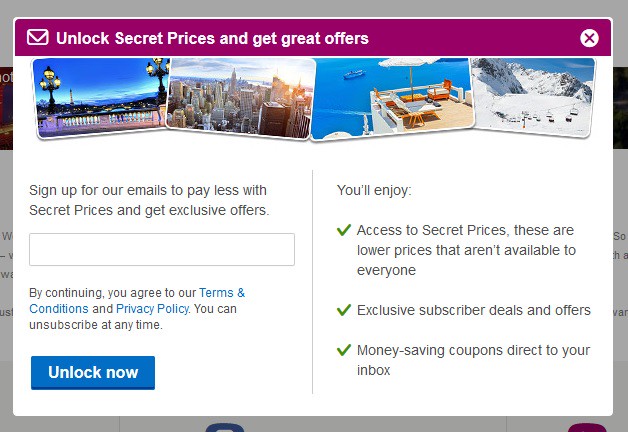 I’ve signed up for the email newsletter of pretty much every booking website so that I know about their sales. Thanks to the newsletters, I always know which site has a general sale or a sale for a specific location, and they often send exclusive voucher codes for 20% off. Several sites also offer ‘secret prices’ for their email subscribers.