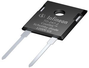 Infineon Technologies is extending the CoolSiC™ Schottky 1200 V G5 diode portfolio with the release of a TO247-2 package. It can easily replace silicon diodes for higher efficiency. The expanded 8.7 mm creepage and clearance distances offer extra safety in high-pollution environments. Forward currents up to 40 A are available to address EV DC charging, solar energy systems, uninterruptible power supply (UPS) and other industrial applications.