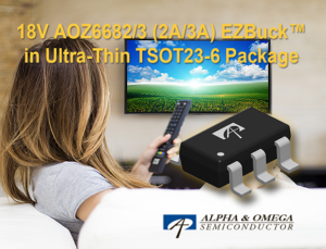 Alpha and Omega Semiconductor Limited introduced AOZ6682CI and AOZ6683CI. These devices are high efficiency, simple-to-use synchronous buck regulators. The AOZ6682CI and AOZ6683CI are both available in an ultra-thin, thermally enhanced TSOT23-6 package and deliver 2A and 3A output current, respectively.