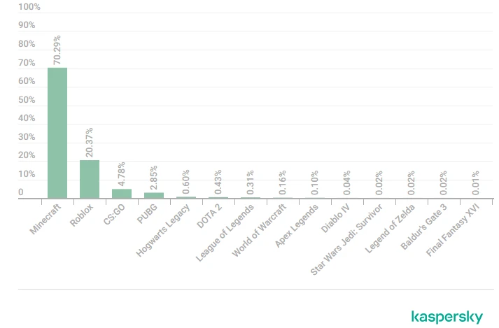 As of 2022, around 25% of the players were underage, making them potential targets for attackers. Over the previous year, Kaspersky discovered 4,076,530 game-related desktop infection attempts, affecting 192,456 players globally.