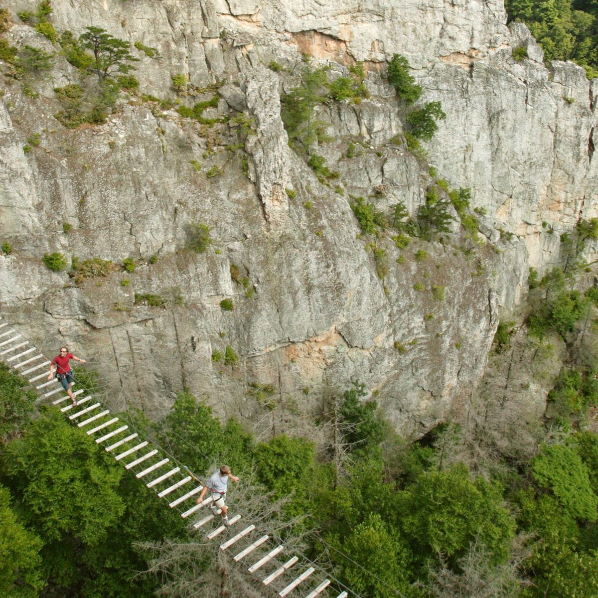 Don’t have any rock climbing experience but still have an unquenchable desire to scale sheer rock walls using your own strength (and plenty of safety equipment)? Try out a via ferrata. Popular in Europe, a via ferrata, which translates to “iron path” in Italian, is a climbing route that often features cables, bridges, and metal ladders in lieu of rock holds. These via ferratas in the U.S. offer the thrill of wall climbing, but with no experience required, making for perfect adventures for the vert-curious.