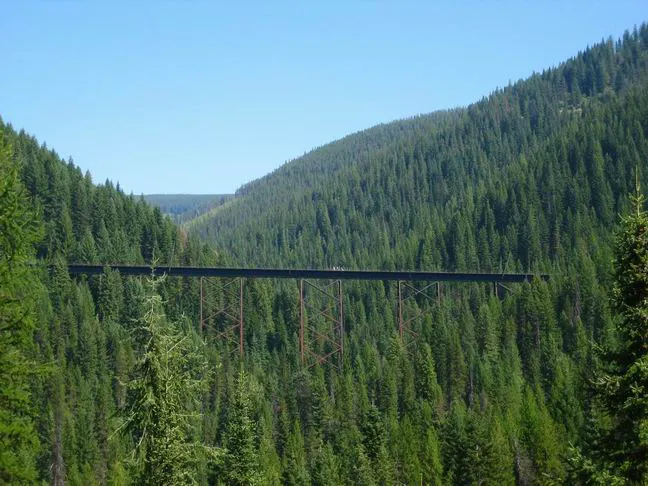 Route of the Olympian—technically, this ride is a continuation of the Hiawatha Trail on the old Milwaukee rail bed, though it’s totally separate from the Route of the Hiawatha. You’ll continue to ride through tunnels and over scenic trestles, following the St. Regis River. This trail is a beginner level, flat, and free to ride.