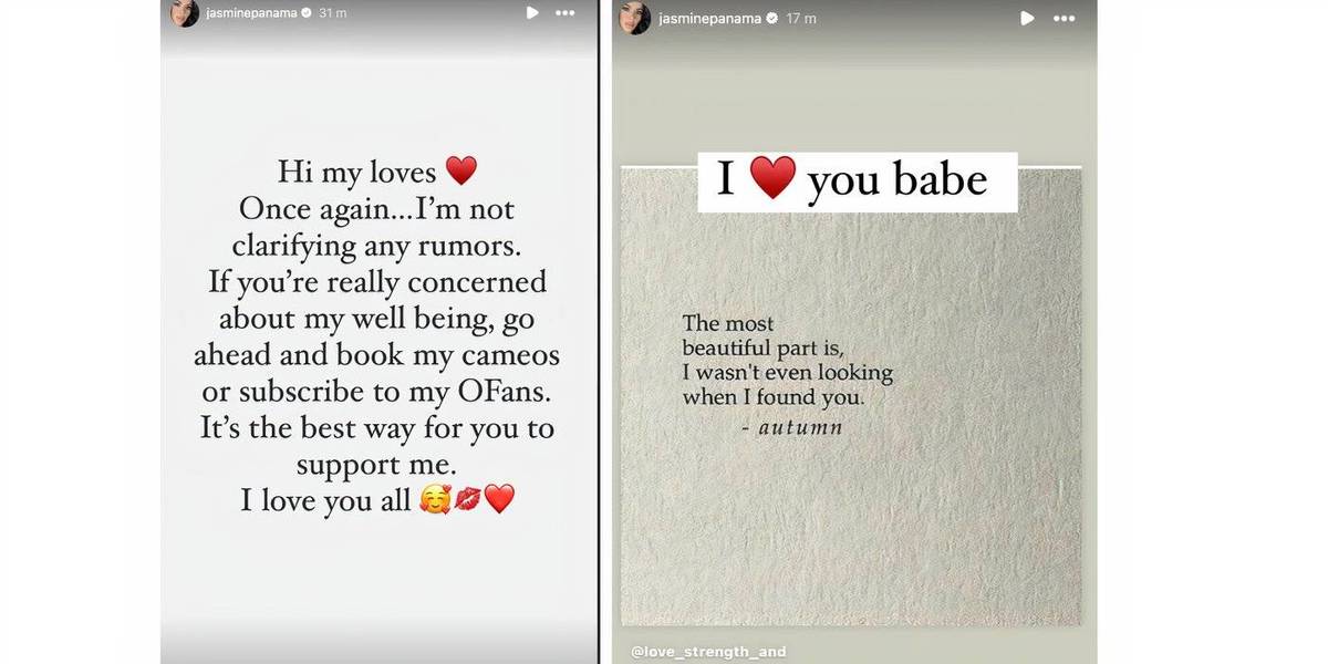 Jasmine wrote that she was not interested in talking about the rumors on social media. However, if her fans were really concerned about her well-being, they could go ahead and book her Cameos or subscribe to her OnlyFans. “It’s the best way for you to support me,” Jasmine wrote before adding, “I love you all.” Jasmine then reposted a quote from @love_strength_and which said, “The most beautiful part is, I wasn’t even looking when I found you.” Jasmine added the caption, “I [heart] you babe,” for Matt, showing she supported him as he faced the allegations.