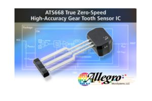Allegro MicroSystems, LLC announces a new optimized Hall-effect three-wire differential speed sensor integrated circuit (IC) and permanent magnet pellet combination. Allegro’s ATS668 has integrated EMC protection components to provide a user-friendly solution for true zero-speed digital gear tooth sensing. It is offered in a small single over-mold package that can be easily assembled and used in conjunction with a wide variety of gear tooth sensing applications. The ATS668 is designed for automotive transmission systems making it also ideal for non-automotive applications such as recreational vehicles, industrial equipment, white goods, and exercise equipment.