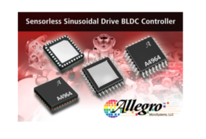 Allegro MicroSystems, LLC introduces the release of a three-phase, sensorless, brushless DC (BLDC) motor controller for use with external N-channel power MOSFETs. Allegro’s A4964 is specifically designed for the automotive market with target applications to include engine cooling fans and oil and water pumps. It is designed to provide the motor control functions in a system where a small microcontroller provides the communication interface to a central ECU and intelligent fault and status handling. The A4964 provides the supply and watchdog for the microcontroller and the high-voltage interfaces between the microcontroller and the central ECU and ignition switch. It can also operate as an independent single chip remote motor controller.