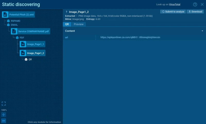 - Identifying the key components detonation of which moves the attack forward, including URLs embedded within QR codes or rewritten by security filters.