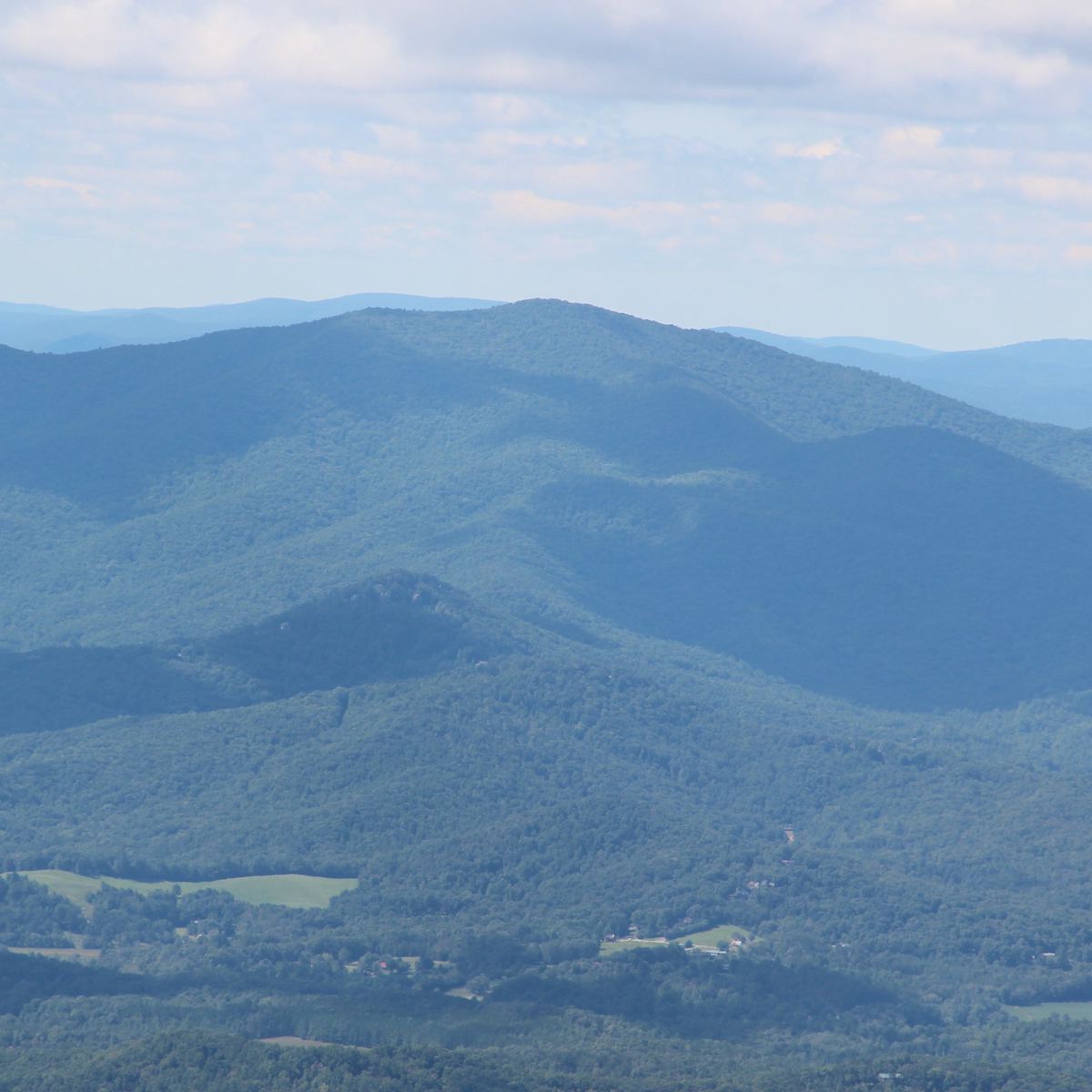 Cross wooded Rich Mtn. summit (3,450 ft.); after descending .3 mi., bear L as BMT picks up old road. Turn R @ WPT 2 to return to trailhead
