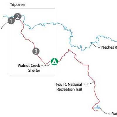 Cross golden bottom of Sandy Creek. Trail swings R, following creek SSW; purple bluebells decorate banks in summer
