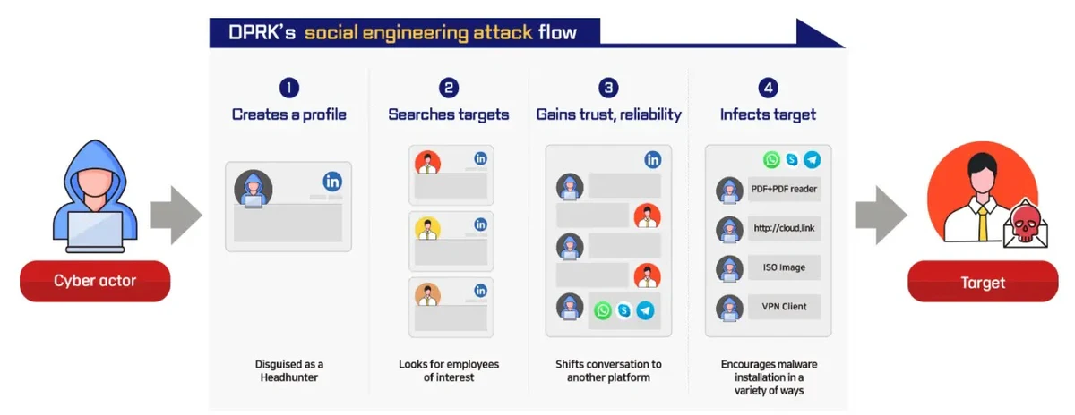 The second case reveals the LAZARUS group’s proficient social engineering skills, exploited by DPRK since mid-2020 to infiltrate defense companies.