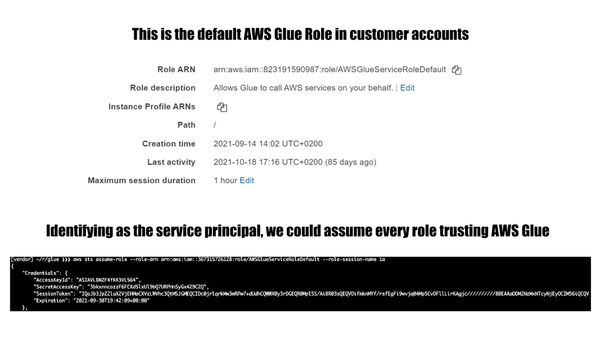 In other AWS customers’ accounts, the security experts have assumed the roles that are trusted by the Glue service.