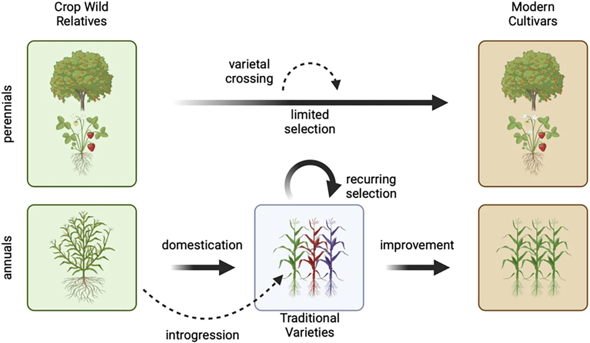Cultivated species have reduced genetic diversity relative to their closest wild relatives. Preserving the rich genetic resources that crop wild relatives offer while avoiding detrimental variants and maladaptive genetic contributions is a central challenge for ongoing crop improvement. This Essay from Jeffrey Ross-Ibarra supports the use of traditional varieties as an intermediate between wild relatives and modern cultivars to increase genetic diversity in crops.