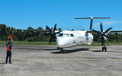 <p><strong>AIR CONNECTIVITY</strong>. A Philippine Airlines aircraft lands at Borongan City Airport in Eastern Samar in this undated photo. The city government of Borongan in Eastern Samar has welcomed the move of Bislig City in Surigao del Sur to replicate its unique flight operations model<em>. (Photo courtesy of Borongan City government) </em></p>