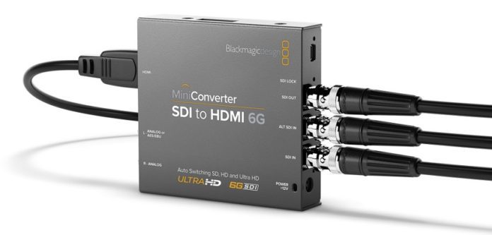 Blackmagic Design announced new broadcast quality 6G‑SDI mini converters for converting SDI to HDMI and HDMI to SDI. These new models include more advanced features and new lower prices than the previous 3G‑SDI and 4K models that they replace. Mini Converter HDMI to SDI 6G is available now from Blackmagic Design resellers worldwide for US$145, and Mini Converter SDI to HDMI 6G is also available for US$185.