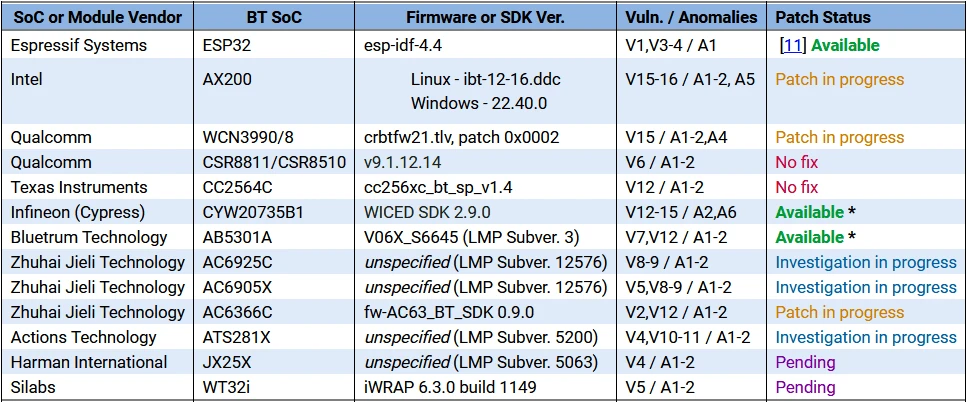 These are reported to the respective vendors, which are already patched. BrakTooth vulnerability had already received the bug bounty from the Espressif System and Xiaomi. It affects more than 1400 product listings.