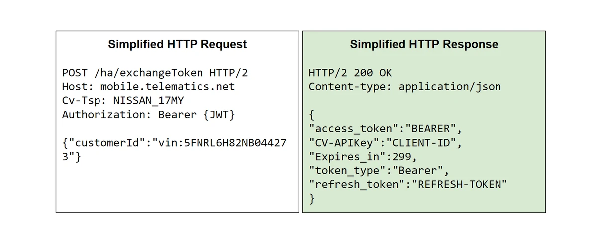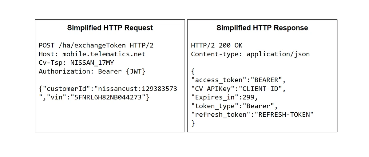 In the above HTTPS request, a VIN” parameter was removed and still works, in another hand, the request gets failed if the other things “nissancust” prefix and “Cv-Tsp” header will be changed.