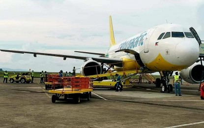 HIGH DEMAND. A Cebu Pacific aircraft at the Tacloban Airport. The budget carrier is adding more flights to this city from hubs in Manila and Cebu starting July 2024 to accommodate the rising number of passengers from and to this city. (Photo courtesy of the Civil Aviation Authority of the Philippines)