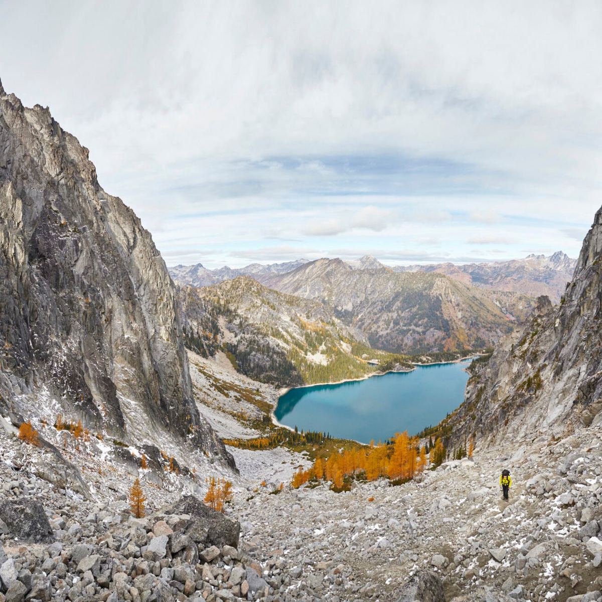 The icy crunch of mysnowshoes ripples into the silence and then falls away. Another step, and my breath fogs before me in miniature echo of the gray clouds obscuring the valley below. Here on Artist Point, though, all is crystalline sunlight. Beyond the ridgeline, the hanging glaciers of Mt. Shuksan cling to ancient greenschist cliffs. Approaching a steep hillock, I flip up the heel risers of my snowshoes and dig in my poles, eager to see what view waits at the top. I’ve been climbing for a while, leaving the clouds behind as more and more peaks come into view on either side; now I’m at the crest at last. For the first time all morning I can see the looming, 10,781-foot dome of Mt. Baker, a wisp of steam rising from the crater. From my new high point, the horizon stretches to the bare, red-brown cliffs of American Border Peak, too steep for snow. On the lower slopes ancient cedars and firs crowd over the turquoise Nooksack River. The rest of the hike is wonderful, but this moment is perfection. Baker’s volcanic fire above, ice around and below, and a sea of peaks beyond them all, spilling north into Canada.