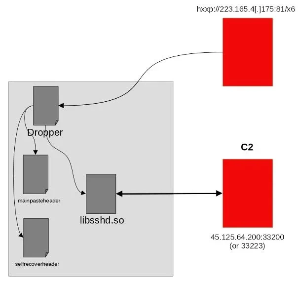 The "libsshd.so" library is the core of the backdoor, equipped with the capability to communicate with a remote command-and-control (C2) server.