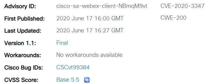 According to the report of Cisco Webex, the vulnerability CVE-2020-3347 has affected many products, and to make more clear, they have also classified them in their brief report.