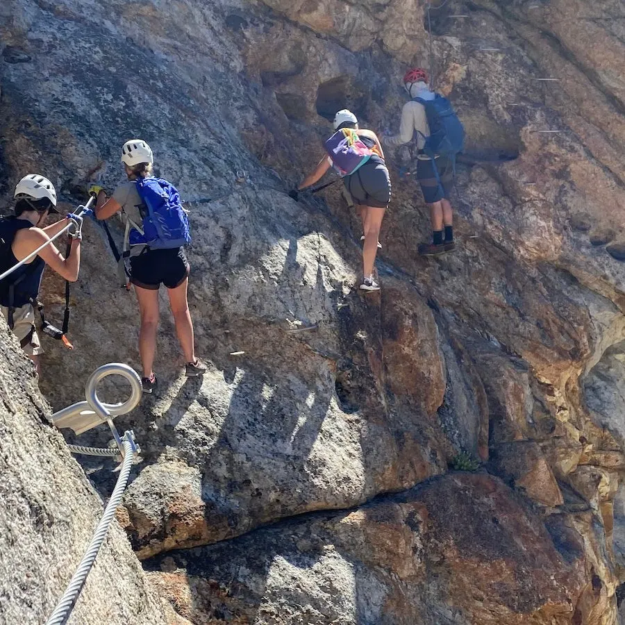 Will and I fell into a comfortable pattern, and with every click of a carabiner, I felt my confidence and physical comfort returning. Adrenaline pushed self-doubt to the back of my mind. I marveled at the wobbly ladders, which are frequently missing a bolt or two. “I suppose someone checks these every season?” I called down to Will as the metal jiggled under my weight. He snorted in response.