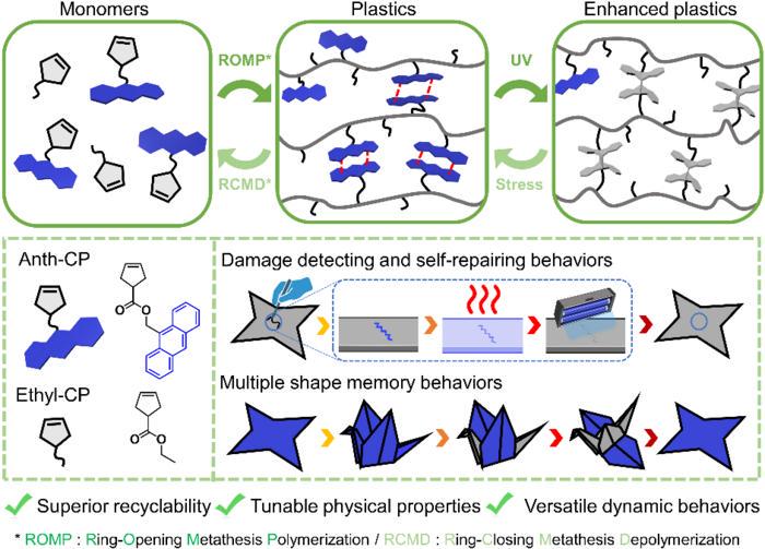 Sustainable polymers, self-healing materials, recyclability, advanced coatings, polymer science, environmental impact, dynamic materials, smart textiles, robotics, eco-friendly technology.
