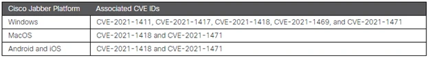 Cisco has confirmed that these vulnerabilities, except for CVE-2021-1471, do not affect Cisco Jabber client software that is configured for either of the following modes: