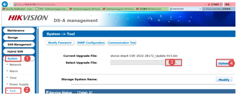 Repeat these upgrades for all available packages for the above-mentioned vulnerable products. For further information, kindly follow the steps to upgrade user-guide for Hybrid SAN and Cluster Storage from Hikvision.