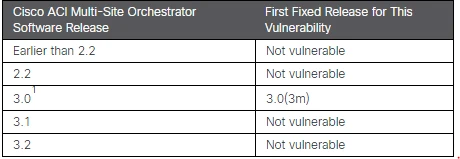 This vulnerability affects Cisco ACI Multi-Site Orchestrator (MSO) running a 3.0 release of software only when deployed on a Cisco Application Services Engine.