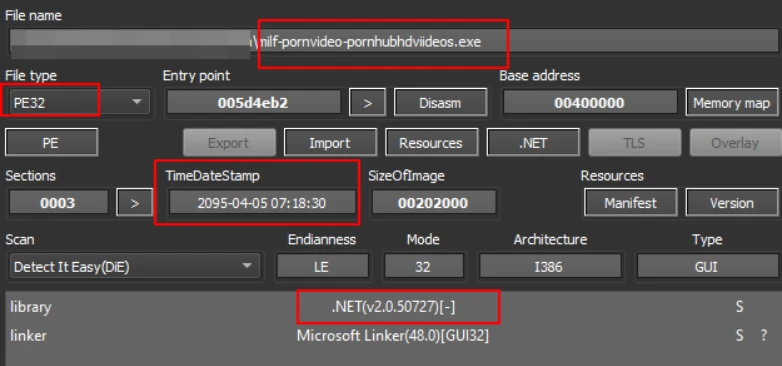The executable file that is downloaded from the aforementioned website is a 32-bit .NET binary that is specifically designed to target users of Windows operating systems.