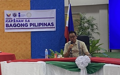 TOURISM PROMOTION. Department of Tourism (DOT)-Bicol Regional Director Herbie Aguas reports on the programs and accomplishments of their office to promote the tourism industry in the six provinces of the region during the "Kapihan sa Bagong Pilipinas" at the Department of Public Works and Highways conference hall in Legazpi City on Tuesday (July 9, 2024). He said DOT-Bicol has started promoting golf and dive tourism in the region. (PNA photo by Connie Calipay)