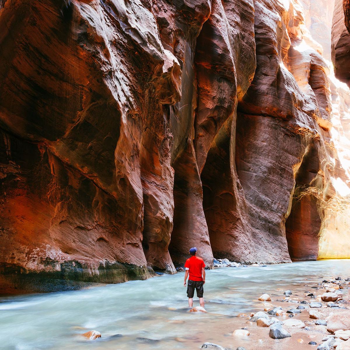 This canyon is starting to feel infinite. It’s been hours since I left the open desert of Grand Staircase Escalante National Monument, dropping from green prairie to red-walled valley to a shoulder-wide maze. Now sandstone surrounds me but for the narrow strip of blue Utah sky over my head, and I seem to be burrowing further and further into the ground. With every boulder I hop over and narrow bend I shimmy through this trip feels more remote. It’s like I’ve entered a rocky portal to a world where I’m the only human left in all this desert vastness, even if I only left my car behind this morning. Steep canyon walls block out the rest of the world; I might as well be on Mars. It’s amazing that an experience like this is so accessible, not requiring technical canyoneering gear or experience. There’s a stillness between the sandstone walls that even the scrub-brush desert above can’t match, setting this trip apart from any other, and I’m determined to sink into every moment of it.