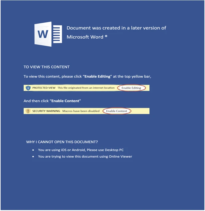 The method of distributing Word documents was once again changed in mid-2022, to include a mechanism that endeavors to fetch a remote template and connect to a domain controlled by the attacker.