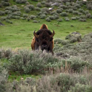 With warmer air temperatures and thinner snowpack, the relatively low elevations (6,200 to 7,600 feet) across the northern portion of the park attract wintering bighorn sheep, wolves, bison, and elk—lots of elk. As many as 5,000 of the ungulates spend winter here. See them by driving 20 miles east from Mammoth Hot Springs to Tower Junction along the Northeast Entrance Road, the only route open to auto traffic in winter. Just east of Tower, some of the biggest herds congregate in the open, grass-and-sagebrush plains of the Lamar and Yellowstone River Valleys. From the junction, head out on snowshoes or skis to tour 3 miles east along Cache Creek. The unmarked, streamside route leads through meadows where wolves and bull elk nose for roughage beneath the snow.