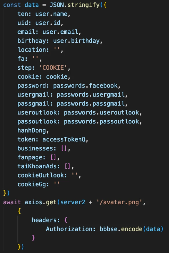 During this phase, the malware exploits the Facebook API to extract information about the compromised account. NodeStealer uses a deceptive tactic to avoid detection by Facebook’s anti-abuse systems.