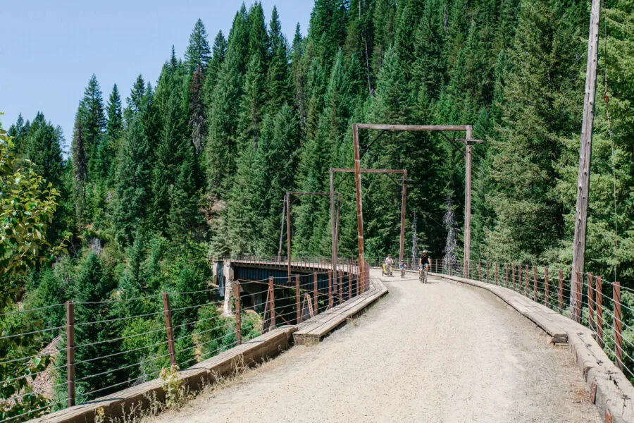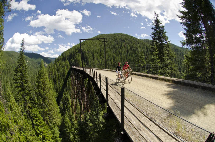 Route of the Olympian: Technically, this ride is a continuation of the Hiawatha Trail on the old Milwaukee rail bed, though it’s totally separate from the Route of the Hiawatha. You’ll continue to ride through tunnels and over scenic trestles, following the St. Regis River. This trail is a flat trail and free to ride; however, it is not a maintained trail and some trestles are unrideable.