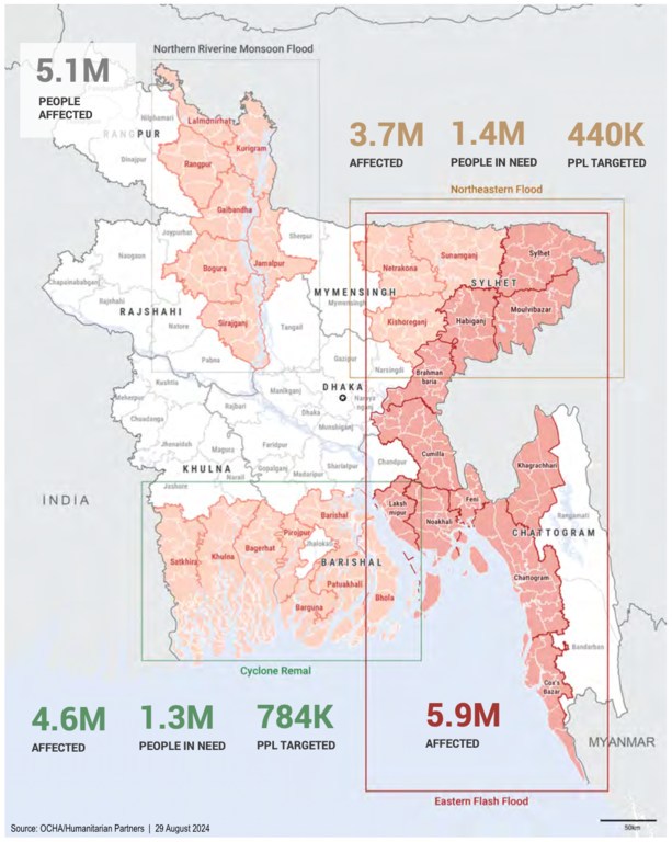 Initial estimates suggest that around five million people - including two million children - have been affected, many stranded without food and relief.