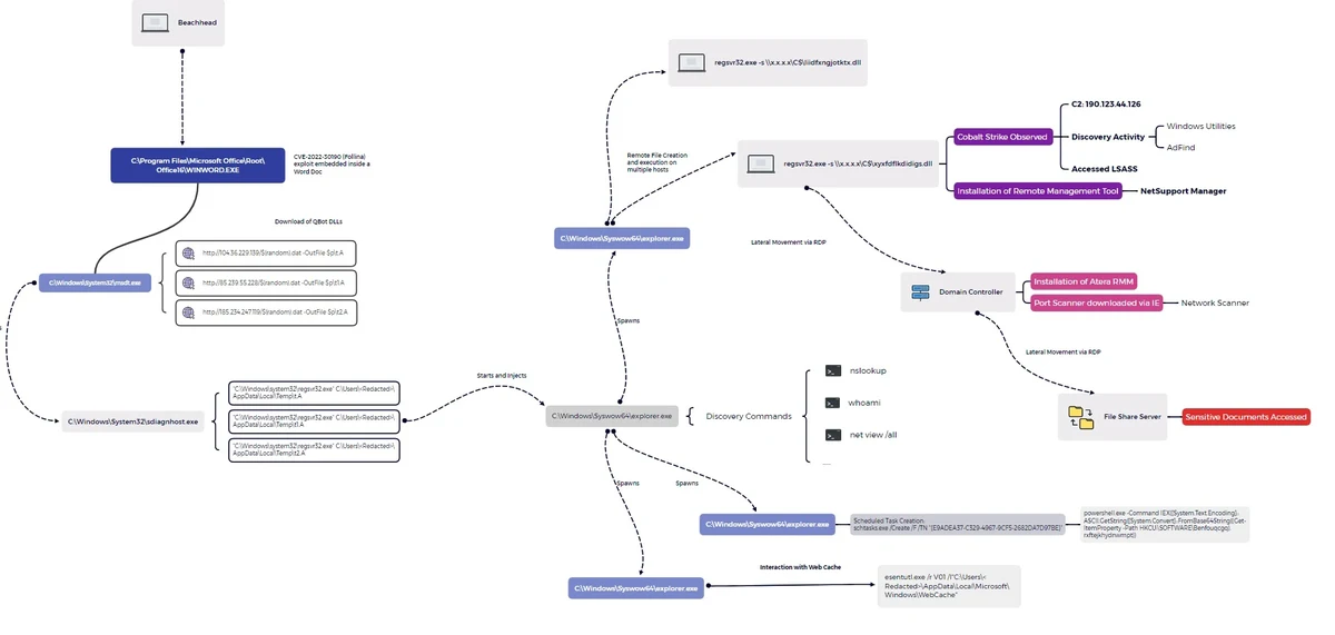 An intrusion was detected by The DFir Report in early June 2022 that leveraged the Follina vulnerability, CVE-2022-30190 to gain initial access. Apart from getting initial access it also initiated the infection chain of Qbot.