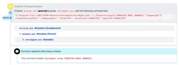 The MSI installers typically used a Remote Monitoring and Management (RMM) tool. The threat actors launched this tool using the msiexec.exe process.