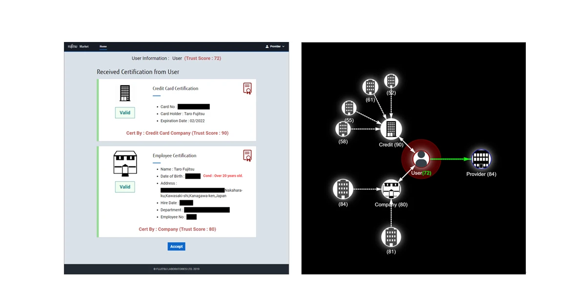 Fujitsu’s new digital identity exchange technology promises a future in which people can enjoy online services more safely, offering user-friendly features including graphics to visualize the relationships between users, as well as a unique “trust score” that make it easier to determine each user’s trustworthiness before starting a transaction.