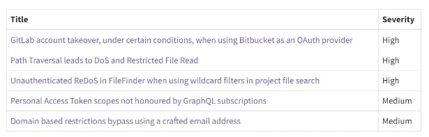 It identified several vulnerabilities requiring immediate attention. Under specific circumstances, an attacker could potentially take over a GitLab account when using Bitbucket for OAuth authentication (High).