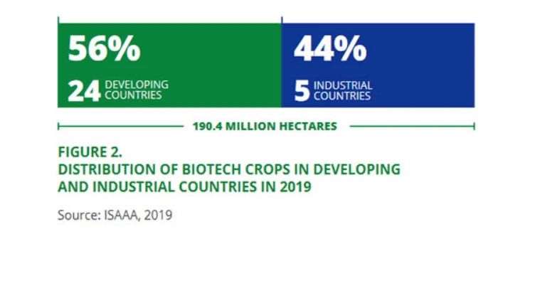 They noted that developing countries grew 56% of the global biotech crop area compared to 44% for industrialised countries.