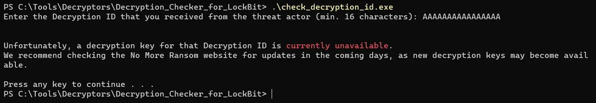 Besides this, the LockBit declared they had resumed operations shortly. The check_decryption_id utility will allow users to verify if they have the right keys for known victims.