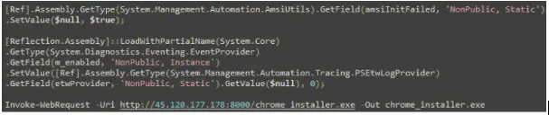 Rapid7 analyzed two malicious executables, fffmpeg.exe and chrome_installer.exe. Ffmpeg.exe executes obfuscated PowerShell scripts that attempt to disable security measures and download additional malware.
