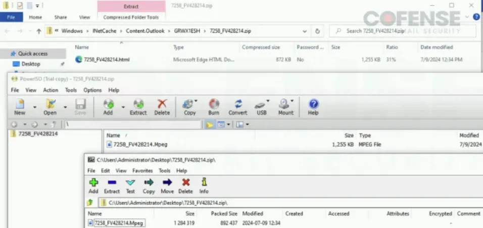 These archives contain HTML files with .Mpeg extensions that enable obfuscation of harmful content from SEG scans.