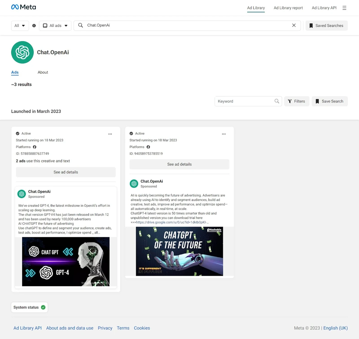 - https[:]//www[:]facebook[:]com/chatsopenai/: 23,527 followers