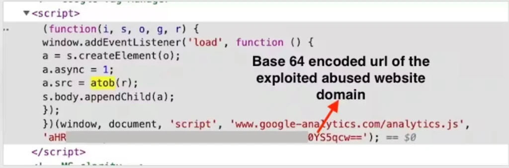 The attack’s stealthiness is enhanced by threat actors obfuscating the skimmer with Base64 encoding, concealing the host’s URL, and structuring it to resemble trusted third-party services like Google Tag Manager or Facebook Pixel, minimizing suspicion.