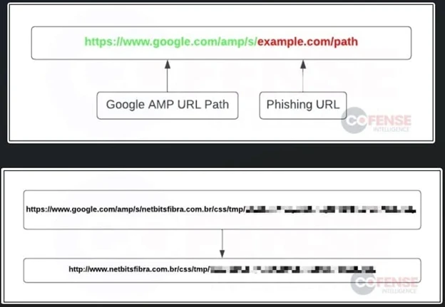 The AMP URLs cause a redirection to a fraudulent phishing website, and this extra step also adds an analysis-disrupting layer.