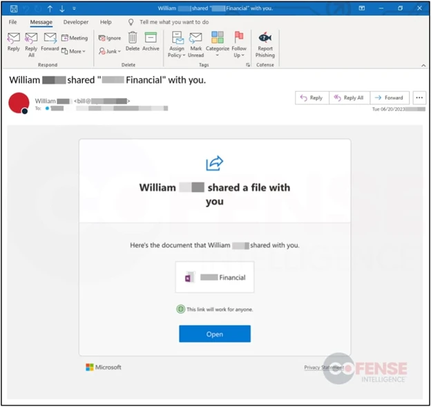 “The lures behind these emails have varied, but are primarily email notifications, requests, reminders, shared files, or are finance related,” Confense.