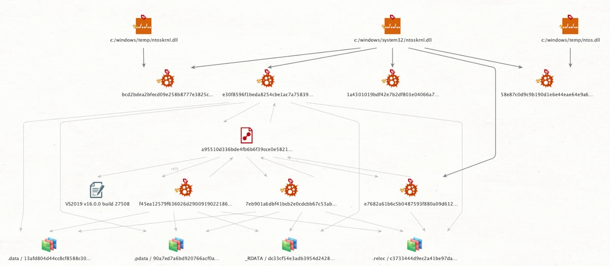 Researchers linked DLL modules to the same malware family based on shared static traits like RichPE header hash and PE sections.
