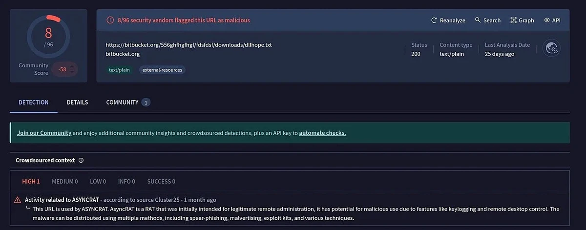 Security firm G DATA recently discovered a multi-stage attack that utilizes Bitbucket repositories to host malicious files, including the notorious AsyncRAT trojan.